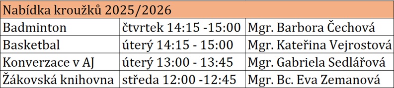 Nabídka zájmových kroužků školní rok 2025/2026